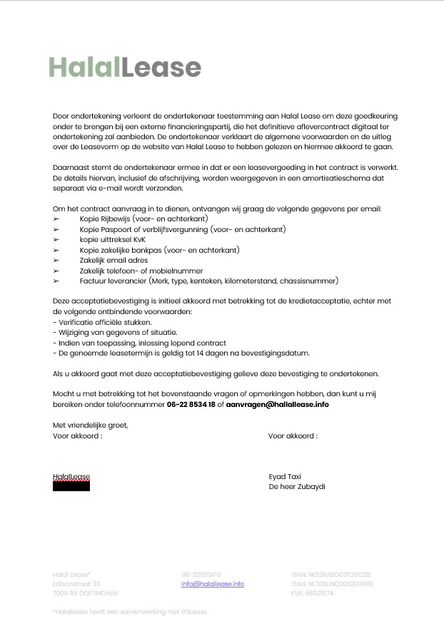 Voorbeeld contract Halal Lease